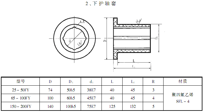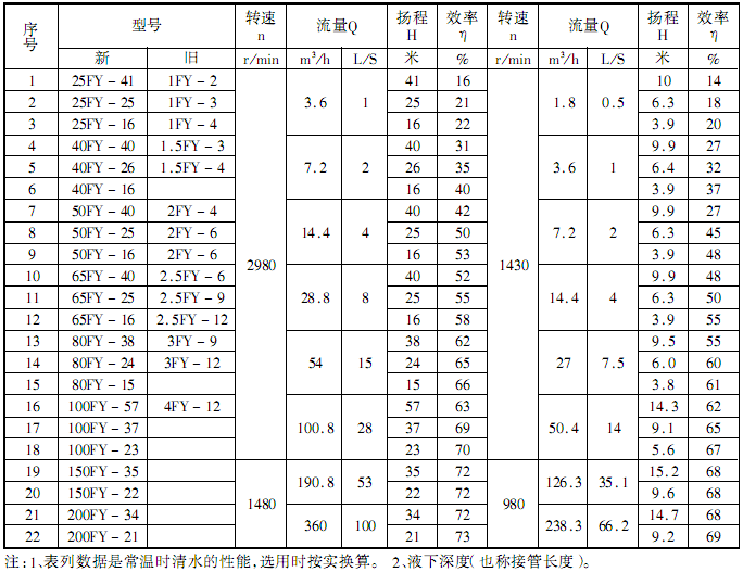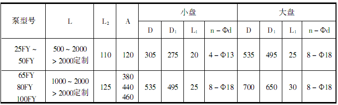此外,F(xiàn)Y型耐腐蝕液下離心泵系列,因伸入容器長(zhǎng)度L的長(zhǎng)短不同,則又分為中間導(dǎo)軸承之結(jié)構(gòu)和無中間導(dǎo)軸承的結(jié)構(gòu)。