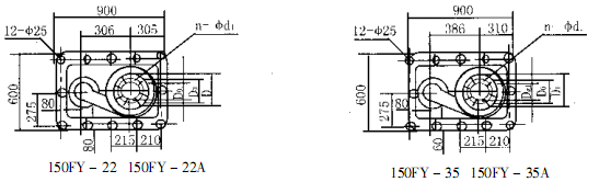 FY型泵的立式電動(dòng)機(jī)以螺栓固緊于電機(jī)座上,并通過彈性聯(lián)軸器與泵直接傳動(dòng)、泵體、中間接管、泵架、出液管、管法蘭,以螺栓聯(lián)接構(gòu)成一起,固定在底板上,泵的整體通過底板安裝在容器上。FY型泵除去觸液部件外其它主要零件,如電機(jī)座、泵架、底架等均用鑄鐵制造。