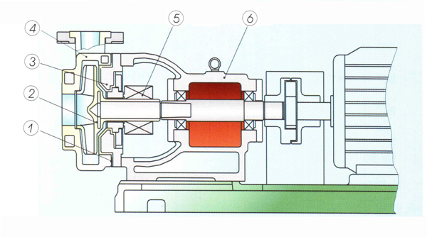 FSB型氟塑料合金耐腐蝕耐酸堿鹽化學(xué)介質(zhì)泵結(jié)構(gòu)圖