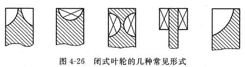 ①閉式葉輪 如圖4-26所示,液體由葉輪的外緣(大直徑處)進(jìn)入葉輪。具有這種構(gòu)形式的旋渦泵揚(yáng)程曲線較陡,在相同葉輪圓周速度下?lián)P程為開(kāi)式泵的1.5~3倍,效率0.3~0.5,體積較小。但汽蝕性能偏低,在沒(méi)有附加氣水分離裝置之前沒(méi)有自吸能力,不能氣液混輸: