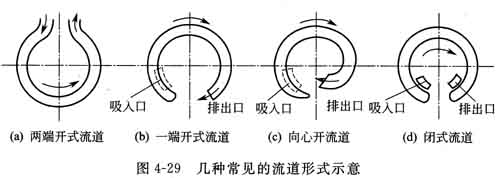 按流道與葉輪的相對(duì)位置可分為圖4-33所示的外圍流道式、外圍雙側(cè)邊流道式、外圍單側(cè)邊流道式、雙側(cè)邊流道式和單側(cè)邊流道式。