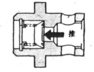 (7)檢查單向閥的動(dòng)作,當(dāng)用螺絲改錐或其它工具推壓?jiǎn)蜗蜷煏r(shí),如下圖所示。閥的動(dòng)作應(yīng)平穩(wěn),如不合要求,應(yīng)更換。