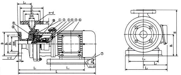 6、如果更換滾珠軸承或泵軸時,必須拆下機架,松開前端軸承蓋4只螺釘。拆下泵軸后端螺母和聯(lián)軸器,將泵軸向前端方向打出即可,再后拆下后端軸封蓋。