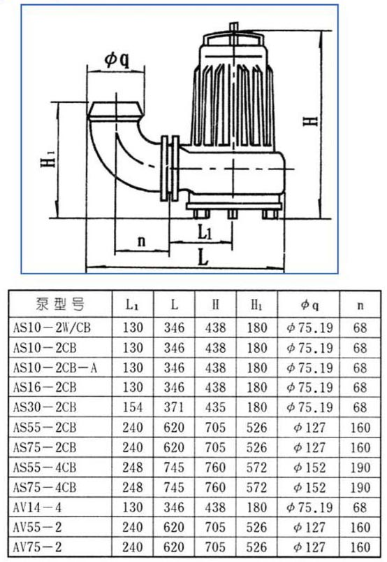 【AS型撕裂式潛水排污泵】性能參數(shù):