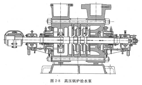 低壓鍋爐給水泵輸送液體的溫度一般在110℃左右,其結(jié)構(gòu)和一般分段式多級(jí)離心泵基本相同,大部分可以互相通用。對(duì)于中壓鍋爐給水泵,由于工作壓力和工作溫度比低壓的高,通常軸封裝置較完善,軸承除需要潤(rùn)滑外,有的還用循環(huán)水冷卻。為了隔熱,有的在泵體外包上用鋼板卷成的圓筒罩。泵的支承有的采用中心支承。