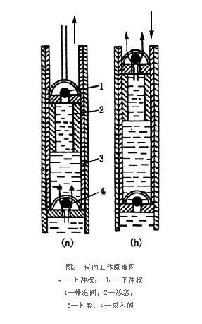 深井泵開泵前,吸入管和泵內必須充滿液體。開泵后,葉輪高速旋轉,其中的液體隨著葉片一起旋轉,在離心力的作用下,飛離葉輪向外射出,射出的液體在泵殼擴散室內速度逐漸變慢,壓力逐漸增加,然后從泵出口,排出管流出。此時,在葉片中心處由于液體被甩向周圍而形成既沒有空氣又沒有液體的真空低壓區(qū),液池中的液體在池面大氣壓的作用下,經吸入管流入泵內,液體就是這樣連續(xù)不斷地從液池中被抽吸上來又連續(xù)不斷地從排出管流出。