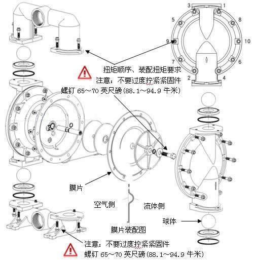 氣動隔膜泵長時間,高速運行容易損壞出故障,原因無外乎磨損、松動、破裂和污阻,以下為氣動隔膜泵的拆解,故障分析與維修方案: