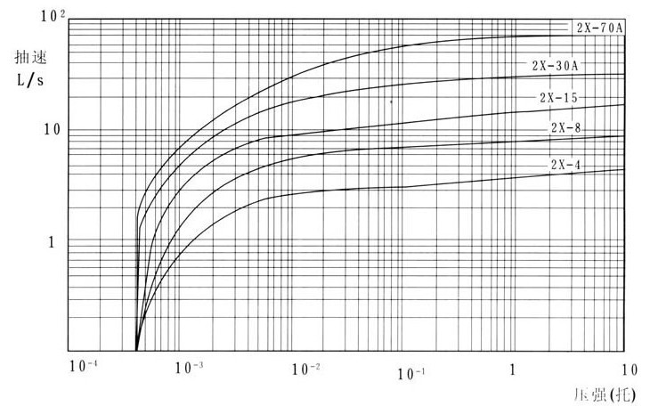 四、2X型旋片式真空泵的性能曲線圖: |