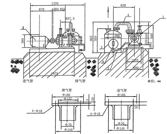 SZ型水環(huán)式真空泵的安裝尺寸圖及安裝說明