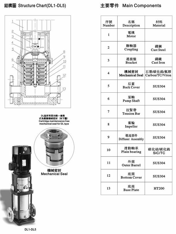 CDLF立式不銹鋼沖壓泵為安裝標(biāo)準(zhǔn)電機(jī)的非自吸立式多級離心泵,電機(jī)軸通過泵頭用聯(lián)軸器直接與泵軸聯(lián)接,拉桿螺栓將耐壓筒、過流部件固定在泵頭和進(jìn)出水段之間,泵進(jìn)出水口在泵底同一直線上;CDLF不銹鋼立式多級沖壓泵是一種多功能產(chǎn)品,可以輸送從自來水到工業(yè)液體的各種不同介質(zhì),適應(yīng)于不同溫度、流量和壓力范圍,CDLF不銹鋼立式多級沖壓泵適用于輕度腐蝕性液體。本泵可根據(jù)需要配置智能保護(hù)器,對泵干轉(zhuǎn)、缺相、過載等進(jìn)行有效保護(hù)