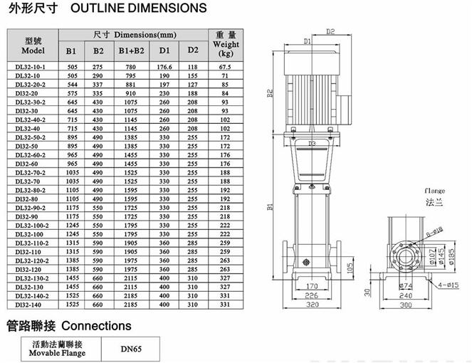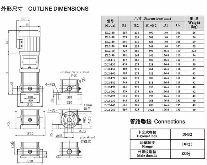 CDLF立式不銹鋼多級泵安裝尺寸圖