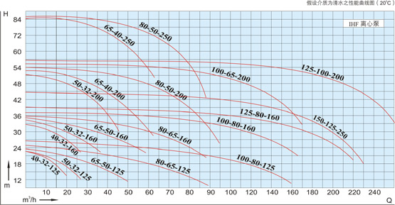 例:IHF50-32-125 IH:標(biāo)準(zhǔn)化工離心泵代號(hào) F:泵的主要材料為氟塑料
