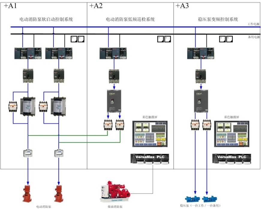 GDXJ1-□-XFS-C系列是消防電動給水泵低頻巡檢系統(tǒng)。適用于二臺以上電動給水泵,可聯(lián)動柴油消防泵。消防水泵智能自動巡檢技術(shù)是在90年代末期研制生產(chǎn)的全自動微機(jī)智能控制消防供水設(shè)備,自行開發(fā)的、符合國家消防法規(guī)的智能型檢測技術(shù)。特點(diǎn)是采用了可編程控制器(PLC)替代了消防水泵純繼電器控制技術(shù),用梯形圖語言按消防要求編程,實(shí)現(xiàn)了消防水泵智能自動巡檢。即是在平常無火災(zāi)情況下,運(yùn)用自動巡檢技術(shù),使消防泵組能自動地周期性逐臺起動運(yùn)行,發(fā)現(xiàn)水泵故障能以聲、光形式告知現(xiàn)場值班人員和將泵組運(yùn)行、故障信息傳遞到遠(yuǎn)方的消防中心。當(dāng)火災(zāi)出現(xiàn)時,能自動退出巡檢模式,使消防泵組立即投入消防模式,即“消防優(yōu)先”原則。