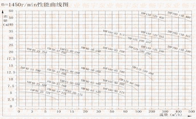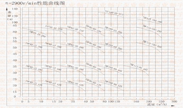 三、IHF氟塑料離心泵產(chǎn)品性能參數(shù): 型號(hào) 轉(zhuǎn)速(Rev)=2900r/min 介質(zhì)密度=1000kg/m3 轉(zhuǎn)速(Rev)=1450r/min 介質(zhì)密度=1000kg/m3 流量 揚(yáng)程 電機(jī)功率kw 汽蝕余量m 效率 整機(jī) 流量 揚(yáng)程 電機(jī)功率kw 汽蝕余量 效 率 整機(jī) IHF40-25-125 4 21 1.5 2.0 40 90 2 5.5 0.55 2.0 34 80 6.3 20 3.2 5 10 18 4 3 IHF40-25-160 4 33 2.2 2.0 33 100 2 9 0.55 2.0 27 80 6.3 32 3.2 8 10 28 4 6 IHF40-25-200 4 51 4 2.0 26 140 2 13 0.75 2.0 20 80 6.3 50 3.2 12.5 10 47 4 10 IHF40-25-250 4 81 7.5 2.0 25 195 2 20.5 1.5 2.0 19 80 6.3 80 3.2 20 10 78 4 19.5 IHF50-32-125 7 22 2.2 3.0 51 105 4 5.5 0.55 3.0 45 80 12.5 20 6.3 5 15 16 8 3.5 IHF50-32-160 7 33 4 3.0 46 120 4 9 0.55 3.0 40 80 12.5 32 6.3 8 15 30 8 6 IHF50-32-200 7 51 7.5 3.0 39 170 4 13 1.1 3.0 33 92 12.5 50 6.3 12.5 15 47 8 10 IHF50-32-250 7 82 11 5.0 35 225 3.5 21 1.5 5.0 30 102 12.5 80 6.3 20 15 78 7 18 IHF65-50-125 15 22 3 3.5 62 110 8 5.5 0.55 3.5 55 80 25 20 12.5 5 35 18 15 3 IHF65-50-160 15 33 5.5 3.5 57 135 8 9 1.1 3.5 51 92 25 32 12.5 8 35 28 15 6 IHF65-40-200 15 51 11 3.5 52 210 8 13 1.5 3.5 46 110 25 50 12.5 12.5 35 45 15 10 IHF65-40-250 15 82 18.5 3.5 50 360 8 21 3 3.5 43 140 25 80 12.5 20 35 72 15 18 IHF80-65-125 35 22 5.5 4.0 69 155 16 5.5 1.1 4.0 64 110 50 20 25 5 60 18 35 3 IHF80-65-160 35 33 11 4.0 67 160 16 9 1.5 4.0 62 110 50 32 25 8 60 27 35 6 IHF80-50-200 35 52 15 4.0 63 240 16 13 2.2 4.0 57 120 50 50 25 12.5 60 45 35 10 IHF80-50-250 35 82 30 4.0 56 250 16 21 5.5 4.0 51 140 50 80 25 20 60 75 35 18 IHF100-80-125 65 22 11 4.5 77 230 35 5.5 1.5 4.5 74 130 100 20 50 5 120 18 60 3 IHF100-80-160 65 35 15 4.5 73 280 35 8.5 2.2 4.5 69 140 100 32 50 8 120 26 60 6 IHF100-65-200 65 51 30 4.5 73 420 35 13 5.5 4.5 68 320 100 50 50 12.5 120 43 60 10 IHF100-65-250 65 82 45 4.5 71 560 32.5 20.5 11 4.5 66 350 100 80 50 20 120 65 60 16.3 IHF125-100-160 100 38 30 5.0 70 440 50 10 5.5 5.0 74 300 160 32 80 8 180 26 90 6 IHF125-100-200 120 55 55 5.0 65 660 65 13 11 5.0 71 600 200 50 100 12.5 220 45 120 10 IHF125-100-250 65 21 15 5.0 72 620 100 20 120 18 IHF125-100-315 65 36 18.5 3.0 60 620 100 32 120 30 IHF150-125-250 130 22 22 7.0 67 700 200 20 240 18 IHF150-125-315 120 36 45 5.0 73 780 200 32 240 30 IHF150-125-400 120 55 75 7.0 75 920 200 50 400 46 IHF200-150-250 240 22 55 6.0 83 760 400 20 480 17 IHF200-150-315 240 36 75 7.5 75 840 400 32 480 29 IHF200-150-400 240 55 110 7.5 63 960 400 50 480 46 五、IHF氟塑料離心泵性能曲線 IHF氟塑料離心泵泵進(jìn)口口徑<150mm: 1)關(guān)閉電源、進(jìn)出口閥門,松開底腳螺栓;拆開防護(hù)罩將電機(jī)和泵頭聯(lián)軸器分開。 2)松開支架與泵體的連接螺栓、懸支架螺栓。可將葉輪、泵蓋、支架、軸承箱、機(jī)械密封從泵體上一并拆開。 3)松開泵軸端的緊固螺母,用銅棒敲擊螺母和拉緊螺栓,使葉輪的尾錐與泵軸上的錐套分開,葉輪、泵蓋、機(jī)械密封、支架、軸承箱各自分離。 4)松開機(jī)械密封動(dòng)環(huán)的兩只緊固螺釘,可以從葉輪上退下機(jī)械密封動(dòng)環(huán),在取下泵蓋,卸下泵蓋上的機(jī)械密壓蓋螺釘,可以從泵蓋上取下機(jī)械密封的靜環(huán)。 5)如需要更換泵體,則要拆下進(jìn)出口管道的聯(lián)結(jié)螺栓和泵體的地腳螺栓 6)更換葉輪時(shí),要卸下尾錐上的圓螺母。 IHF氟塑料離心泵進(jìn)口口徑≥150mm: 1)關(guān)閉電源、進(jìn)出口閥門,松開底腳螺栓;拆開防護(hù)罩將電機(jī)和泵頭聯(lián)軸器分開。 2)松開支架與泵體的連接螺栓、懸支架螺栓。可將葉輪、泵蓋、支架、軸承箱、機(jī)械密封從泵體上一并拆開。 3)直接取下裝有機(jī)械密封動(dòng)環(huán)軸套,如有銹跡難卸,可利用軸上的反螺紋圓螺母旋下軸套。 4)松開機(jī)械密封壓蓋螺栓,可取下機(jī)械密封靜環(huán):松開機(jī)械密封動(dòng)環(huán)的兩只緊固螺釘,可以從軸套上退下機(jī)械密封動(dòng)環(huán)。 5)更換泵體,則要拆下進(jìn)出口管道的聯(lián)結(jié)螺栓和泵體的地腳螺栓。
