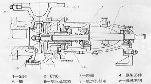 IS/ISR單級(jí)單吸離心泵結(jié)構(gòu)圖及結(jié)構(gòu)說(shuō)明