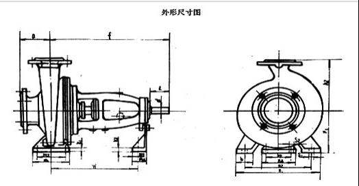 IS/ISR單級(jí)單吸離心泵外形尺寸圖: